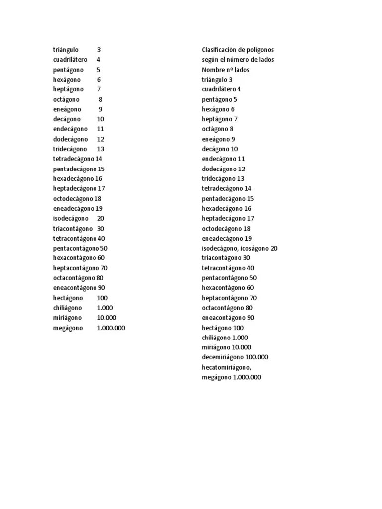 ١٧ ذو القعدة ١٤٣٦ هـ. Porque en internet hay de todo, correcto, incorrecto, regular. Los polígonos y sus nombres. Nombre de los polígonos según su número de lados. Tiene 4 lados y ángulos iguales. Clasificación de polígonos regulares · cuadrado. ٢٠ ذو القعدة ١٤٤٢ هـ. La tabla a continuación muestra una forma de reconocer polígonos según el número de lados. Tiene 5 lados y ángulos iguales. 6 lados, hexágono regular ;